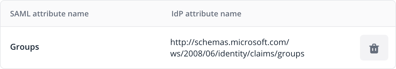 By default, this claim must be named exactly groups. Some identity providers such as Microsoft Entra ID add a namespace to their claims such as http://schemas.microsoft.com/ws/2008/06/identity/claims/groups. If this is the case, or your groups claim has a different name, you must tell Flagsmith which claim it should look at by creating an attribute mapping.