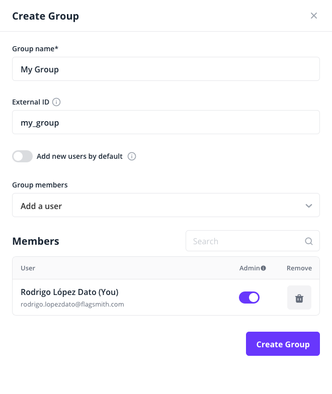 When a user logs in, Flagsmith will make them a member of all the groups listed in the groups claim from your identity provider's SAML assertion. Each value of the groups claim should correspond to the "External ID" of a Flagsmith group: